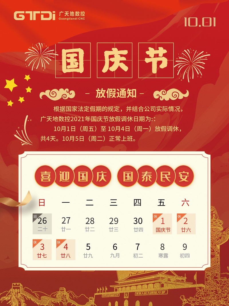 im电竞数控2021年国庆节放假时间安排通知